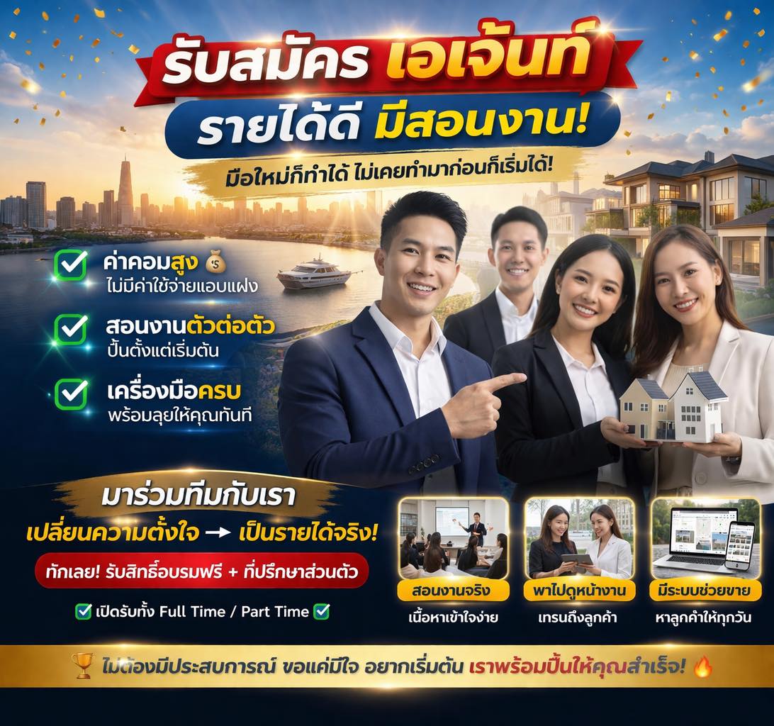 บริหารงานขายโครงการ บ้าน–คอนโด–ทาวน์โฮม วางกลยุทธ์การตลาด บริหารทีมขาย เชื่อมต่อสินเชื่อกับธนาคาร
